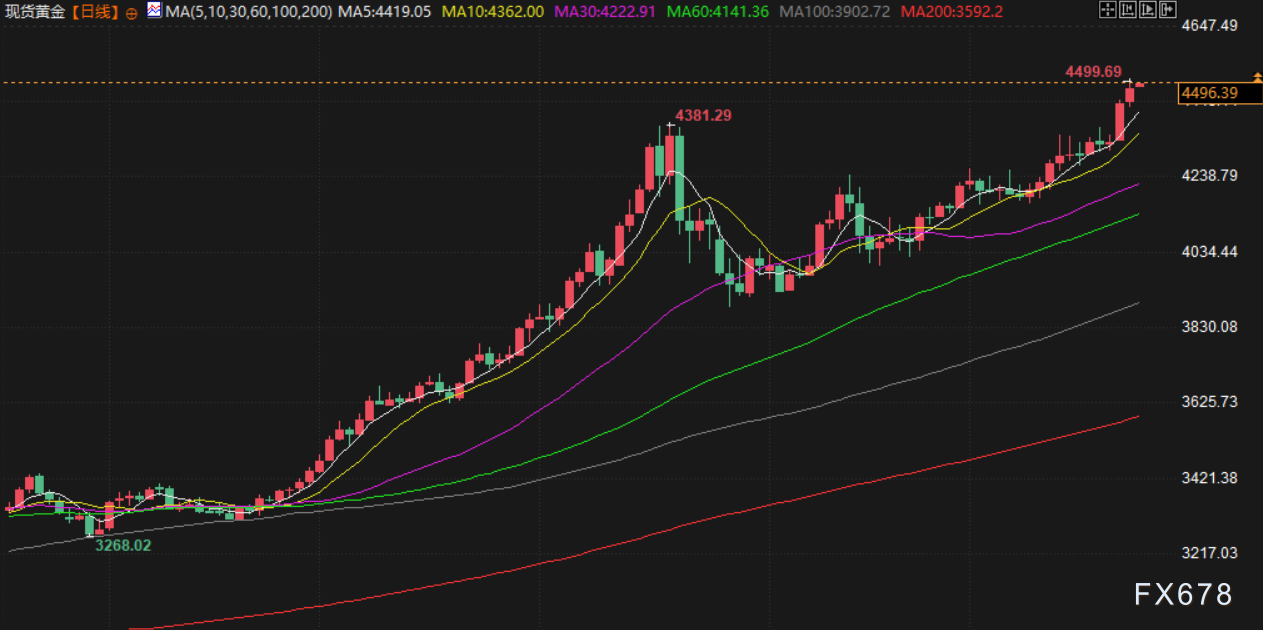 周三(北京时间12月24日)亚市早盘,现货黄金交投于4491美元/盎司附近,避险情绪、美元走软预期及利率下降预期提供助力,金价逼近4500美元/盎司大关,美原油交投于58.47美元/桶,油价周二延续上涨势头,市场正同时权衡美国强劲经济数据带来的需求前景与委内瑞拉、俄罗斯等地缘政治风险引发的供应中断担忧。