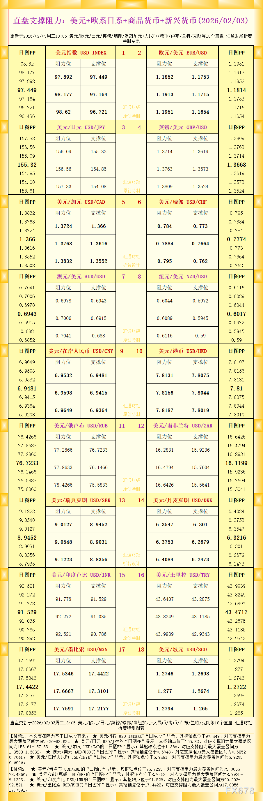 ex中文官网:一张图看18个直盘外汇支撑阻力:美元+欧系日系+商品货币+新兴货币(2026年2月3日)